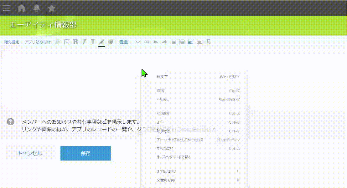 今回のアップデートでは、スペースやポータルのスレッド投稿・お知らせ入力欄に、クリップボードにコピーした画像やファイルをそのまま貼り付けて添付できるようになりました。